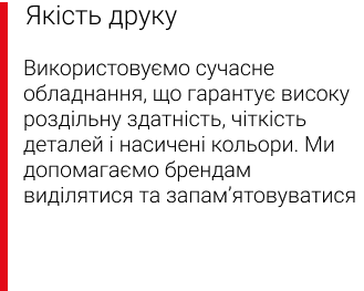 Гарантуємо якість зображення, надійні матеріали та індивідуальний підхід до кожного клієнта.