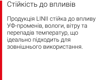 — Стійкість до вологи, сонця та механічних пошкоджень