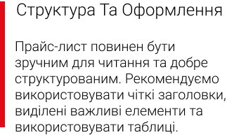 Надрукований прайс завжди під рукою, дозволяє швидко знайти потрібну інформацію без необхідності заходити на сайт чи запитувати менеджера.