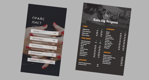Інвестуючи в якісний дизайн та друк від LINII – ви отримуєте стильні, професійні та якісні прайс-листи та меню, які підкреслюють імідж вашого бізнесу, полегшують комунікацію з клієнтами та сприяють збільшенню продажів!